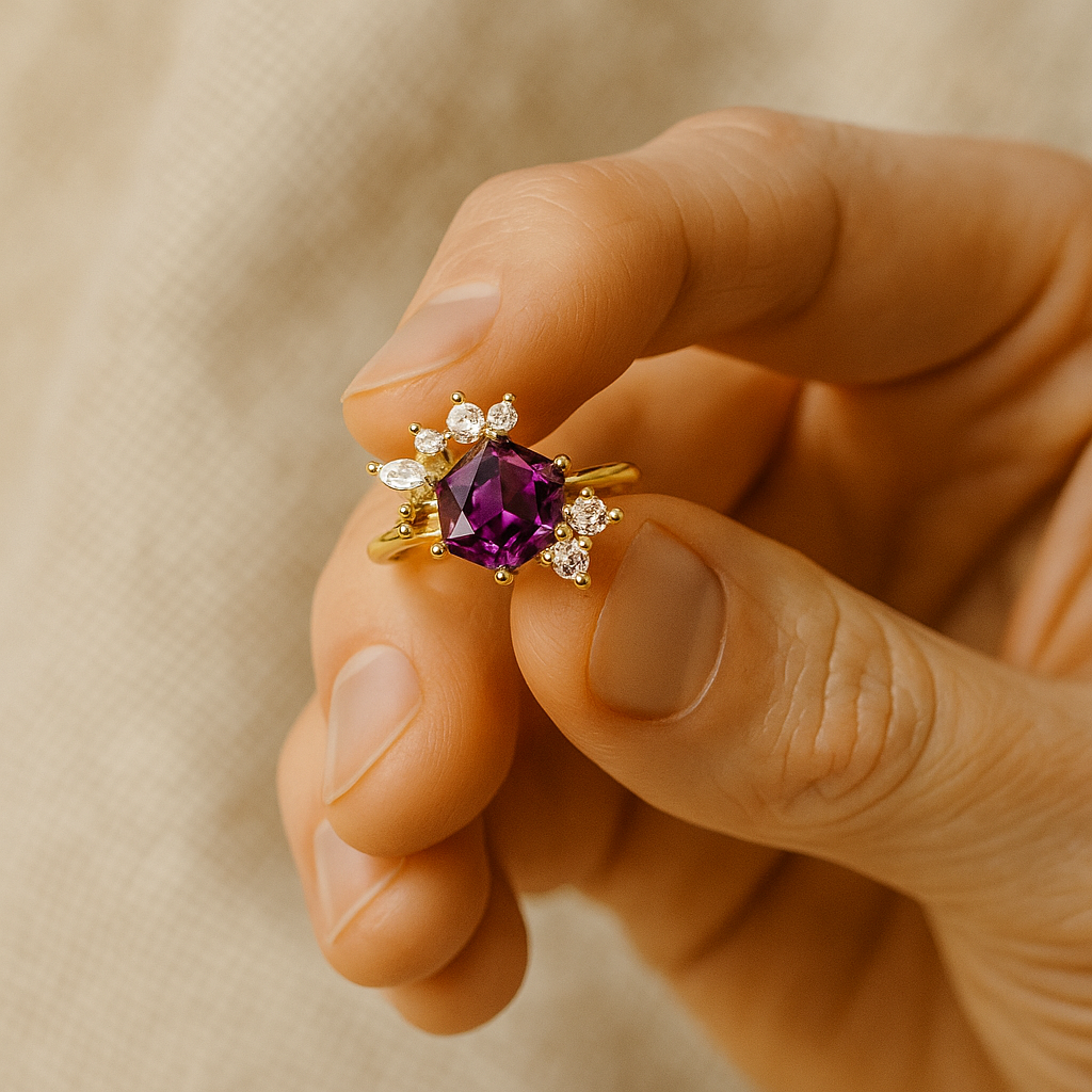 L’améthyste, pierre de sérénité et d’équilibre, serait réputée depuis l’Antiquité pour ses vertus apaisantes et protectrices.