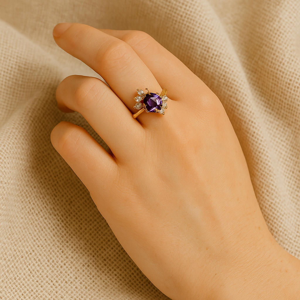 Raffinée et lumineuse, cette bague en améthyste naturelle sertie sur de l’argent sterling 925 incarne l’alliance parfaite entre élégance et authenticité. Son éclat violet intense et sa monture précieuse en font un bijou d’exception, idéal pour vos plus beaux moments.