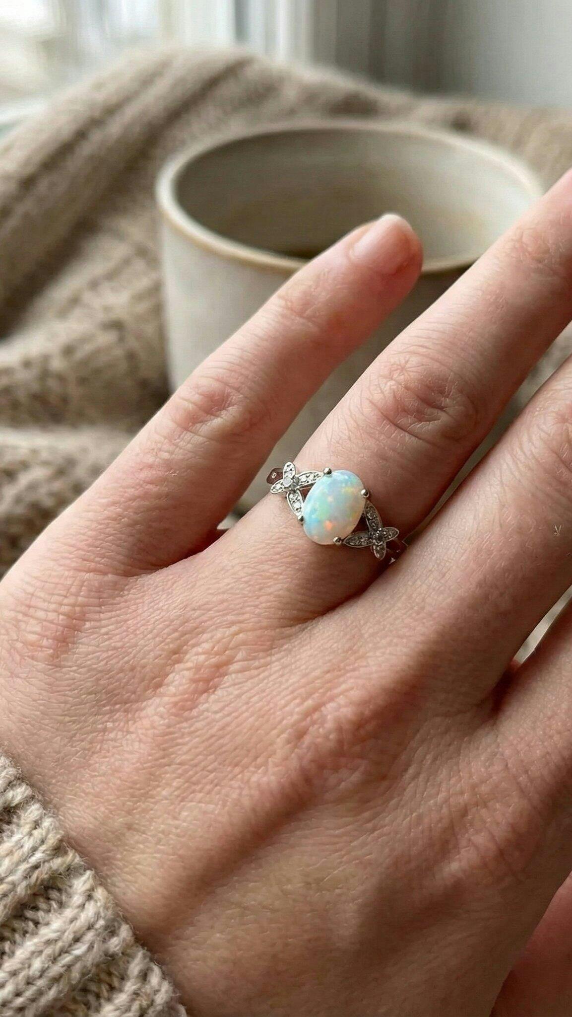Bague en Opale Naturelle – Lumière Éthérée & Élégance Intemporelle