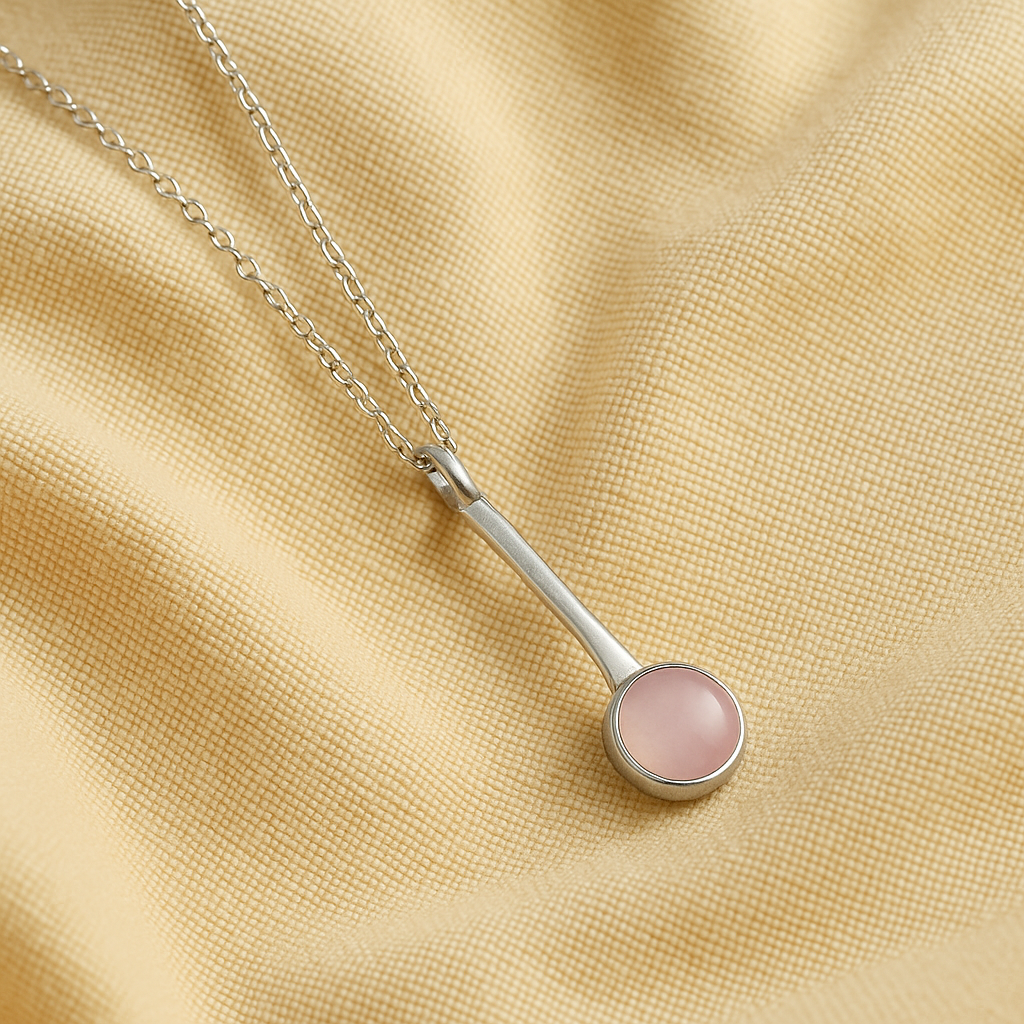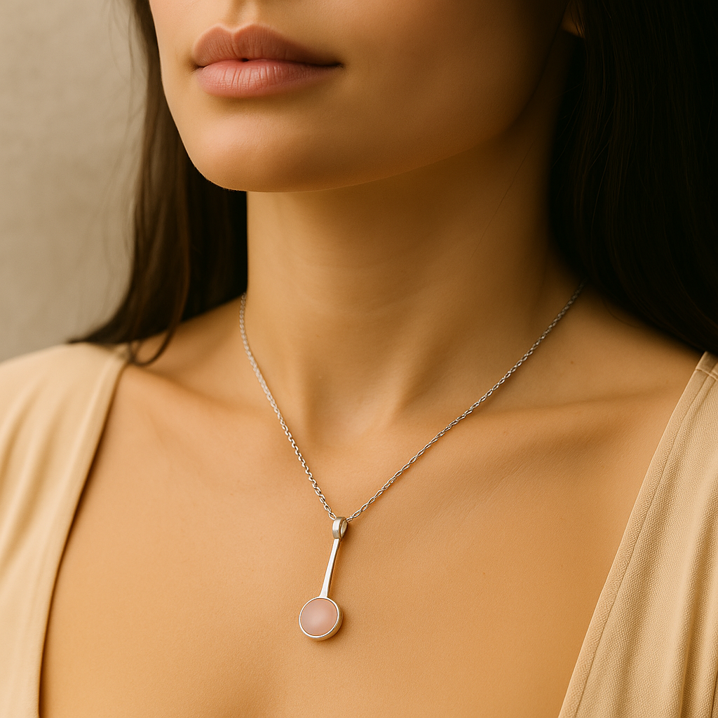 Apportez une touche de douceur à vos tenues avec ce collier raffiné en argent 925, orné d’un pendentif en quartz rose naturel taillé en forme ronde. Un bijou à la fois élégant et porteur de symbolique.