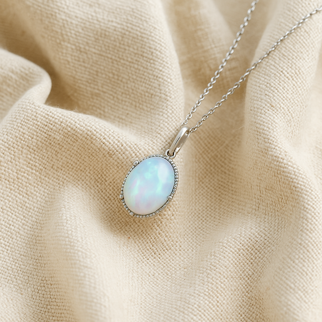 Raffiné et intemporel, ce collier en argent 925 est sublimé par une somptueuse opale naturelle d’Australie taillée en ovale. Ses reflets colorés uniques captent la lumière et révèlent une élégance incomparable, idéale pour les grandes occasions comme pour sublimer vos tenues du quotidien.